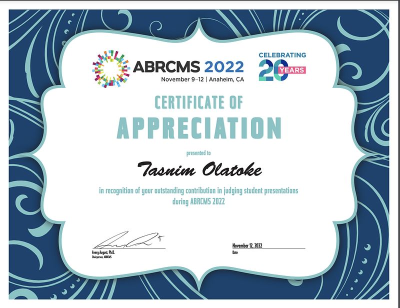 ABRCMS 2022 Undergraduate Poster Judge Certificate